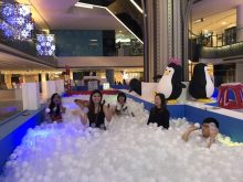 i12 Katong set up a custom-made pool filled with 250,000 white and transparent balls for its ‘White Christmas’ theme. The pool was divided into 3 areas to cater for the different age groups – adult, teenagers and children. The play area was measured in 2 parts: 18.7m by 4.4m and 15.7m by 2.5m. From 1 – 24 Dec 2017, shoppers spending ...