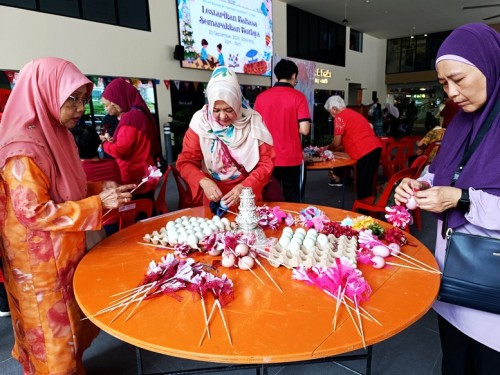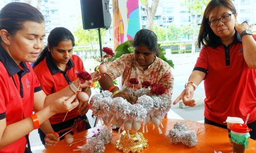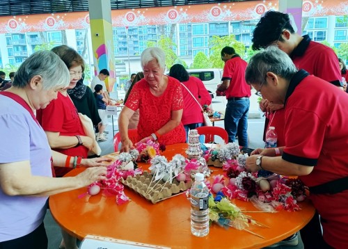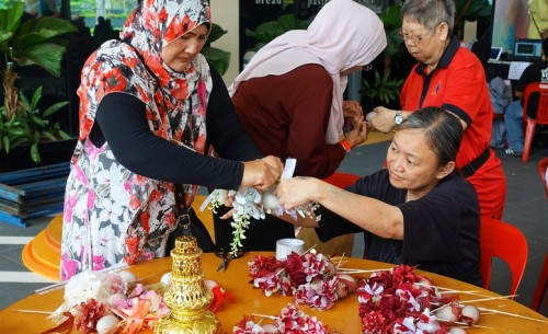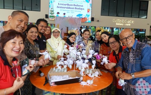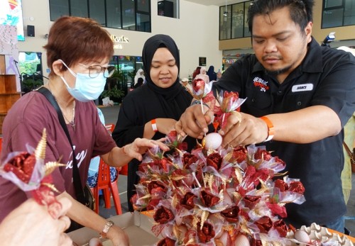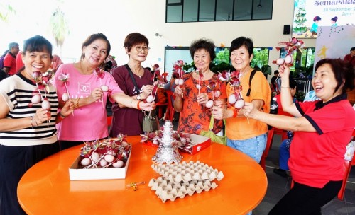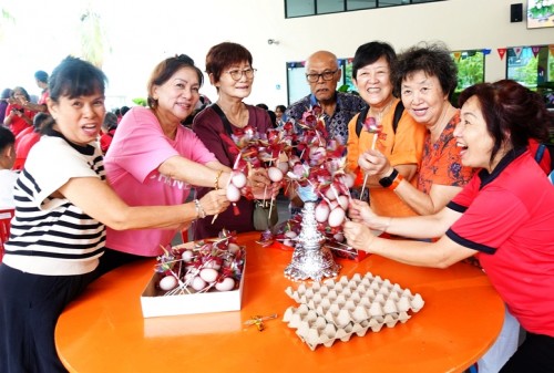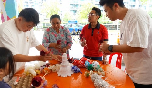 At Tampines Changkat CC’s Bulan Bahasa, the community came together for an afternoon of music and cultural activities. Organised by its MAEC, 15 groups made bouquets of fabric flowers with hanging salted eggs. The bouquets were later placed on a tall wooden rack, reaching a height of 2.18m. Bunga Pahar is a traditional Malay wedding gift for the couple, blessing them with fertility.