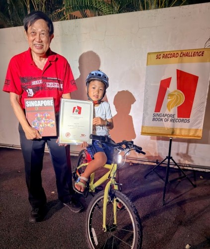 On 2 Apr 2026, Joshua Chan Qing Rui, aged 6 years and 4 months, completed a 126-km cycling adventure around Singapore with his father Henry in 15 hours. Joshua has a passion for speed. The journey on 2 wheels began with a 10-km cycling to Marina Barrage at age 4. By 5, he was riding 30 to 60 km to Changi Airport and beyond, always eager for the next ride. Two weeks earlier he completed a 100-km ride.