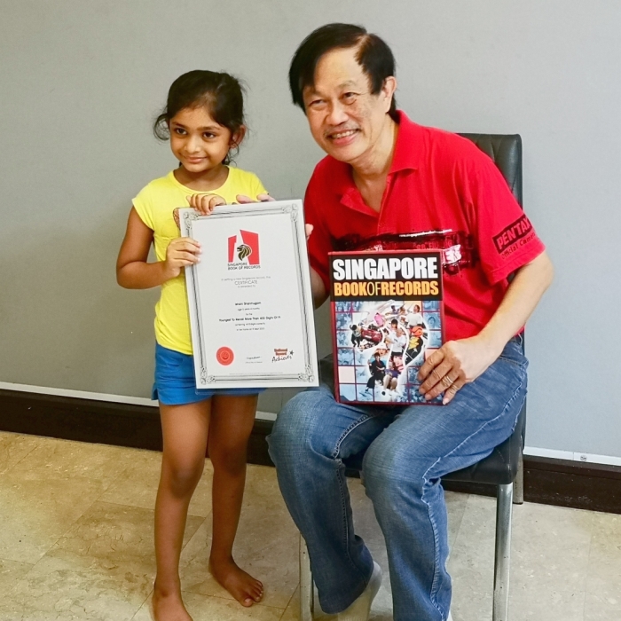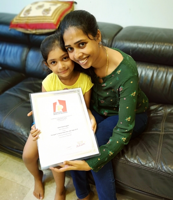 Ishani Shanmugam is 5 years 4 months, a K1 child at Sparkletots. She successfully recited 409 digits of pi without a mistake on 9 Sep 2020 in her home. She took just 3 weeks to work on the memorisation. Her parents are Shanmugam VS and Vennila.